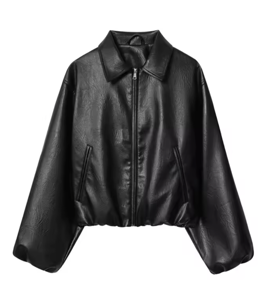 Damen-Bomberjacke aus Kunstleder, langärmelig, schicke Oberbekleidung, elastischer Saum, weibliches modisches Oberteil